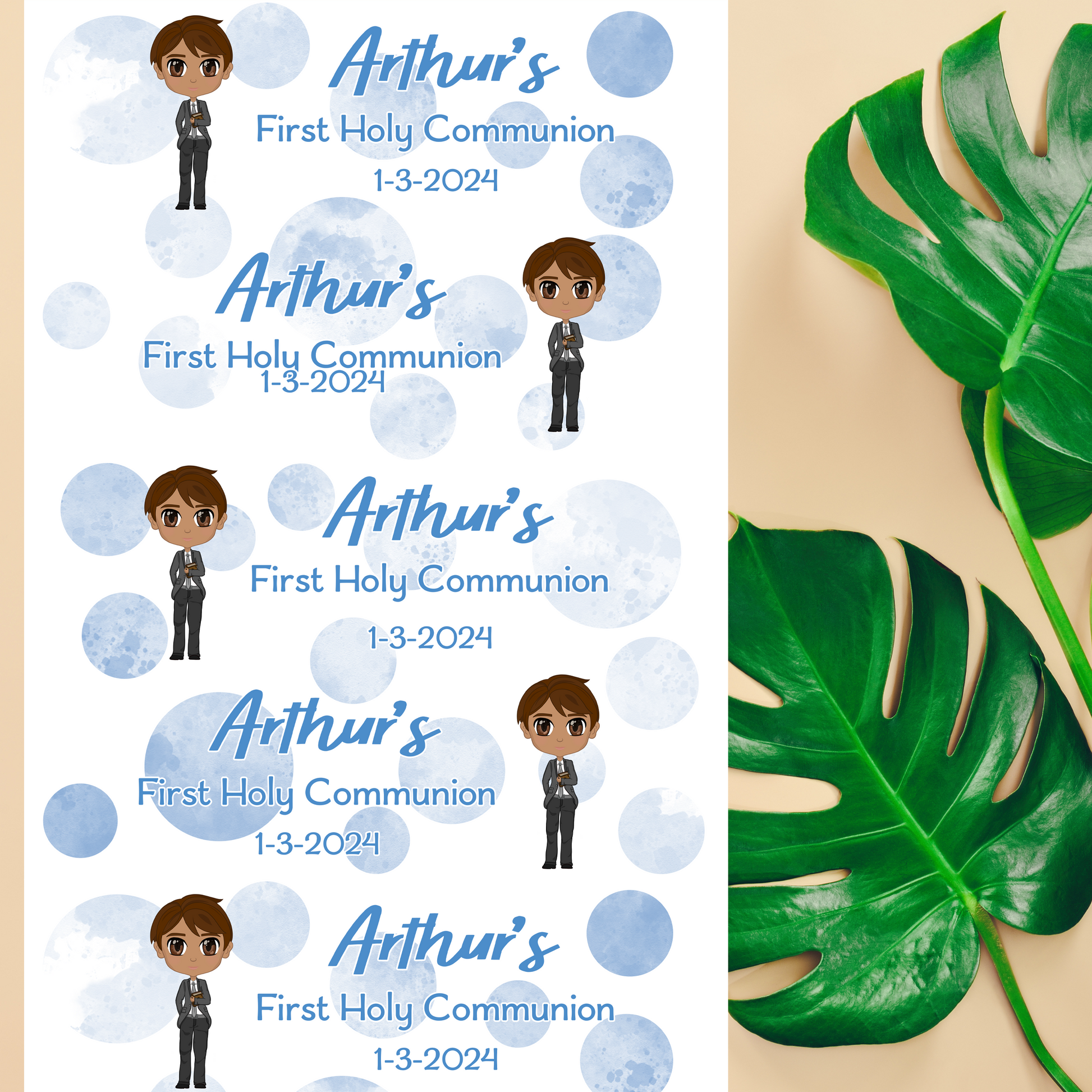 Add a special touch to your First Holy Communion gifts with beautifully designed, custom wrapping paper featuring artwork that matches our Custom Communion Boy range. Perfect for wrapping presents in a unique and meaningful way!